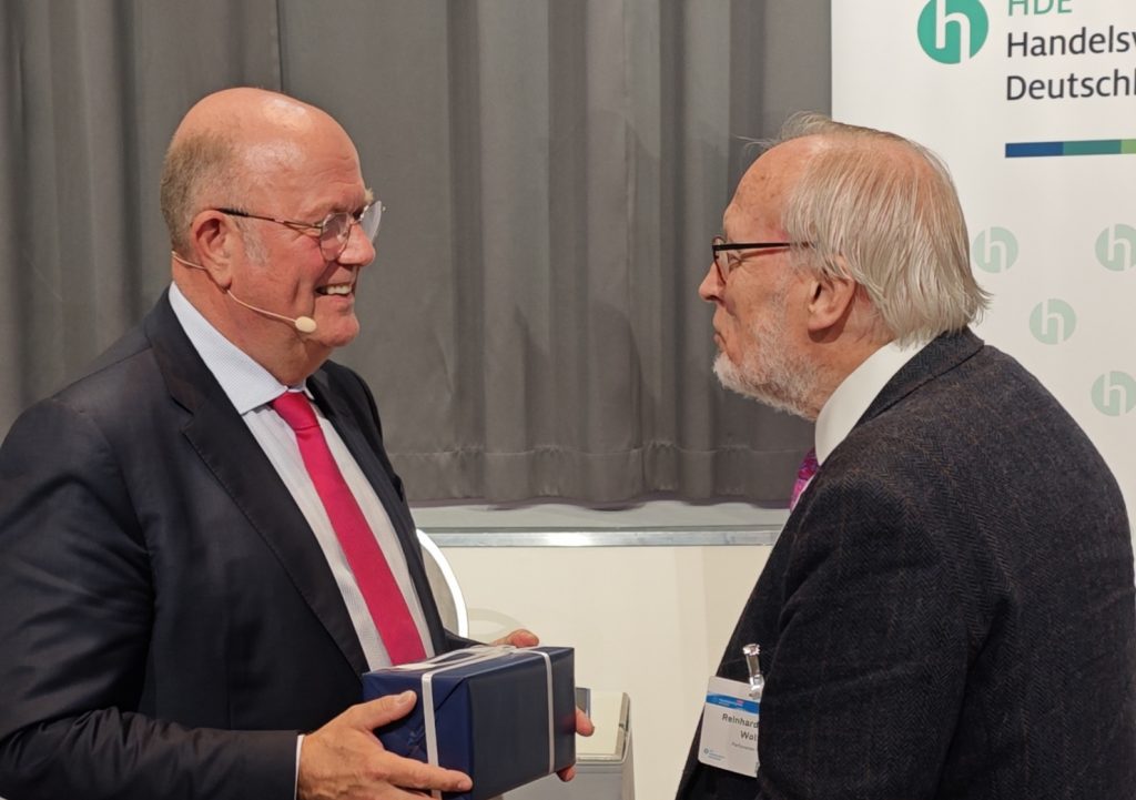 Handelsverband Deutschland würdigt Reinhard D. Wolf – Ein Leben für den Handel in Deutschland und Europa. Im Rahmen der 76. Delegiertenversammlung des Handelsverbandes Deutschland (HDE) in Berlin wurde Reinhard D. Wolf, bereits Träger der goldenen Ehrennadel des Handels, mit einem besonderen Dankeschön des HDE-Präsidenten Dr. Alexander von Preen geehrt. Für sein langjähriges Engagement für den Handel in Deutschland und Europa erhielt Wolf einen KPM-Bären als Zeichen der Wertschätzung.